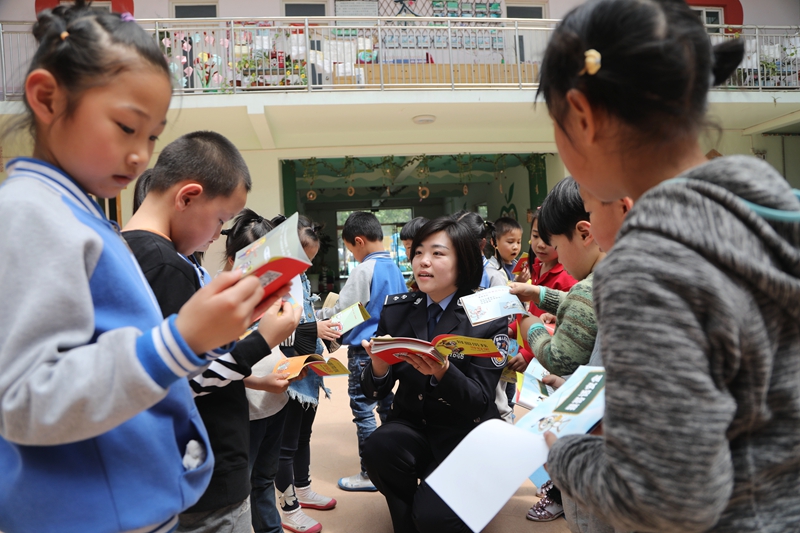 通過給孩子們講解基本的交通安全知識,讓孩子們把學到的交通安全知識告訴家長,督促家長改掉交通陋習,通過“小手拉大手”真正落實“交通安全從小做起”,保證孩子們健康快樂成長。圖為民警上課時的情景。