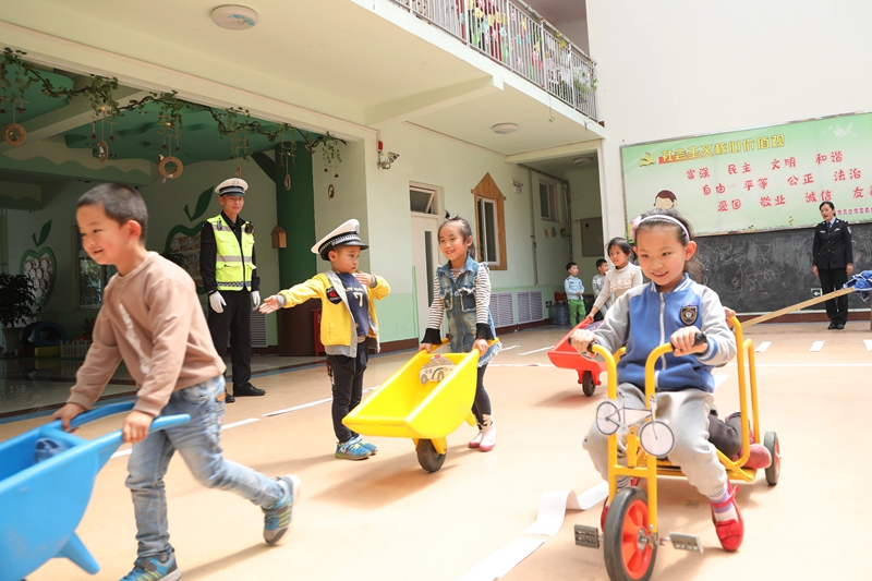 為加強校園交通安全宣傳教育,提高幼兒園師生交通安全意識和文明出行意識,4月28日上午,山東淄博張店交警大隊民警走進張店區(qū)良鄉(xiāng)幼兒園,為幼兒園的50多名孩子們上了一堂生動有趣的交通安全課
