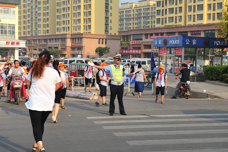“警察叔叔好、阿姨好”,看到執(zhí)勤民警,同學(xué)們總是高興的和他們打招呼,“同學(xué)們好,路上慢點(diǎn),靠右行走,注意紅燈,過馬路要走斑馬線”,臨沂河?xùn)|交警民警總是耐心提醒著每一個(gè)過往學(xué)生。上下學(xué)的路上,他們不停揮動(dòng)手臂提醒過往車輛學(xué)校路段減速慢行,指揮駕駛員為學(xué)生過馬路讓出一條平安通道。他們牽著學(xué)生的手避開來來往往的車流、越過熙熙攘攘的人群,將學(xué)生護(hù)送到安全地點(diǎn)。他們?yōu)榻铀蛯W(xué)生的家長送上交通知識,和家長們一同守護(hù)學(xué)生平安。他們和學(xué)生們一起走過春夏秋冬,歷經(jīng)寒風(fēng)暴雨,每一個(gè)助學(xué)崗都有他們的身影,他們用愛呵護(hù)著每位學(xué)生的安全,學(xué)生們的平安是他們最大的幸福。