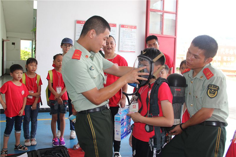 為動(dòng)員全社會(huì)共同關(guān)注暑期留守兒童消防安全,提升留守兒童的消防安全自防自救能力,近日,福建泉州洛江區(qū)政協(xié)、團(tuán)區(qū)委、區(qū)未成年保護(hù)站、關(guān)工委、消防大隊(duì)、志愿服務(wù)隊(duì)等多部門聯(lián)合開(kāi)展“少年夢(mèng) 強(qiáng)軍夢(mèng)”留守兒童消防軍事日主題活動(dòng),來(lái)自洛江區(qū)河市鎮(zhèn)的34名留守兒童在志愿者的陪同下走進(jìn)洛江區(qū)消防大隊(duì),近距離接觸學(xué)習(xí)消防安全知識(shí)。
