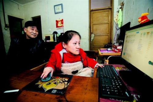 今年春節(jié)前夕,鄭少峰來到王靜家,發(fā)現她正靠在嬰兒床里對著電腦費勁地挪動著鼠標。因全身有40多處骨折變形,王靜打字、移動鼠標只能靠肌肉發(fā)力。她開心地告訴鄭少峰,“我最近在網上找了份兼職,一個月能賺1000多塊呢!”