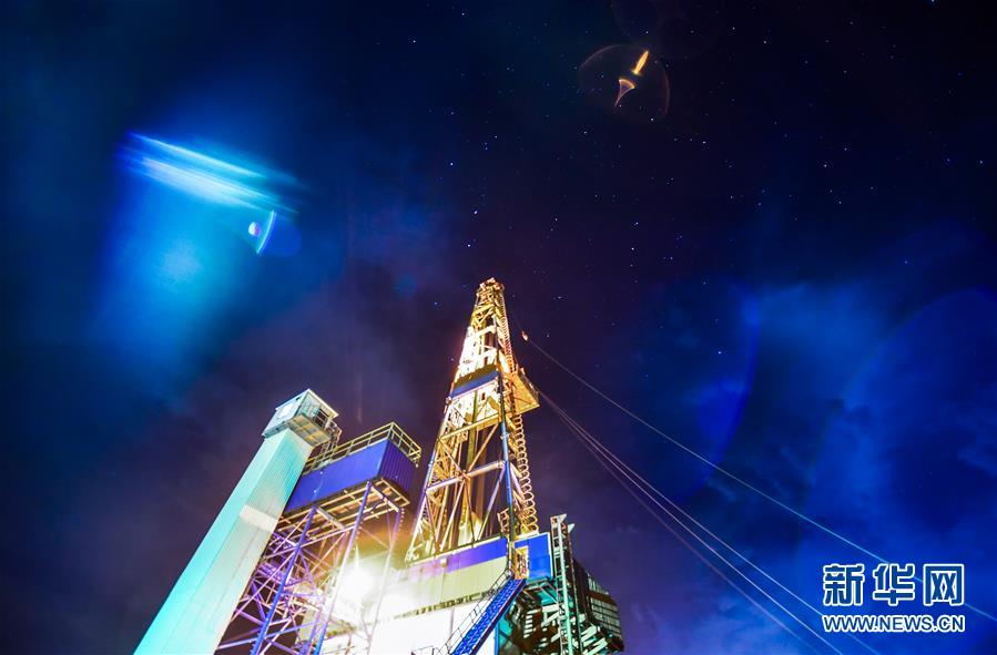 這是夜幕下的“地殼一號(hào)”萬米鉆機(jī)整機(jī)系統(tǒng)(6月1日攝)。