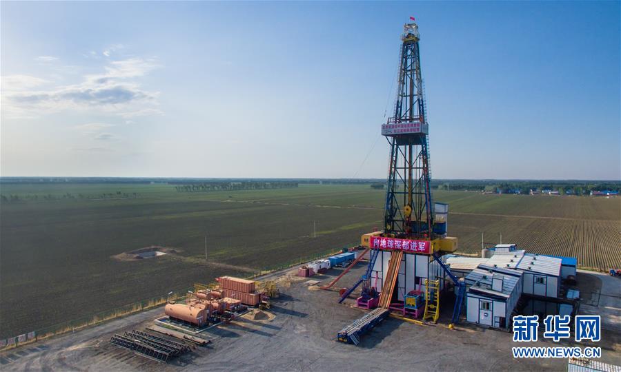“地殼一號(hào)”萬米鉆機(jī)整機(jī)系統(tǒng)(6月2日無人機(jī)拍攝)。6月2日,中國超級鉆機(jī)“地殼一號(hào)”正式宣布完成“首秀”:以完鉆井深7018米創(chuàng)亞洲國家大陸科學(xué)鉆井新紀(jì)錄,標(biāo)志著中國成為繼俄羅斯和德國之后,世界上第三個(gè)擁有實(shí)施萬米大陸鉆探計(jì)劃專用裝備和相關(guān)技術(shù)的國家。當(dāng)日,吉林大學(xué)組織召開的“地殼一號(hào)”萬米鉆機(jī)暨松遼盆地白堊系國際大陸科學(xué)鉆探工程松科二井現(xiàn)場交流會(huì)上,包括5位院士在內(nèi)的業(yè)內(nèi)科學(xué)家一致認(rèn)為,“地殼一號(hào)”的研制及應(yīng)用是中國深部探測計(jì)劃自主能力建設(shè)的重要突破,標(biāo)志著中國地學(xué)領(lǐng)域?qū)Φ厍蛏畈刻綔y的“入地”計(jì)劃取得重大階段性進(jìn)展,為后續(xù)國家地殼探測工程的全面實(shí)施,探求地球深部奧秘提供了高技術(shù)手段。