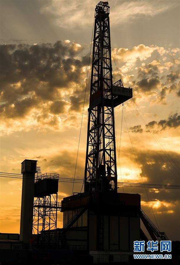 這是夕陽下的“地殼一號(hào)”萬米鉆機(jī)整機(jī)系統(tǒng)(6月1日攝)。