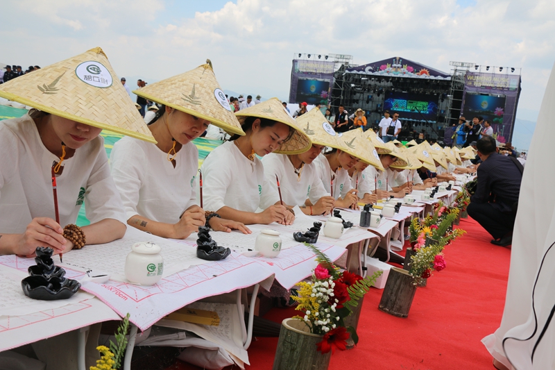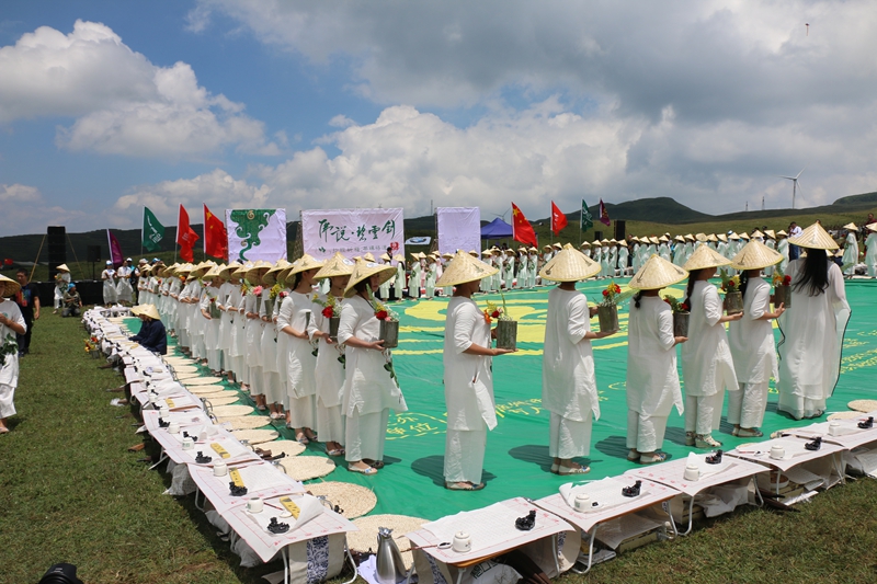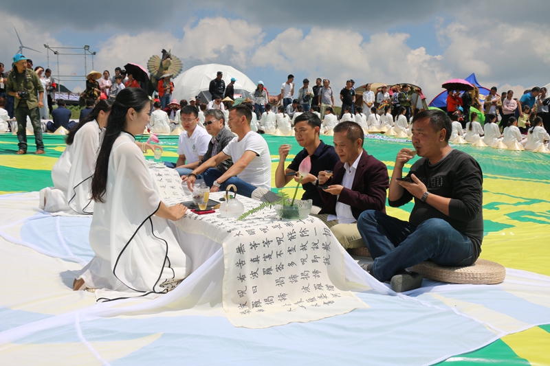 2017年8月19日,2017年中國·貴州·盤州烏蒙大草原生態(tài)體育國家公園“春花秋月”系列活動之《佛說碧云劍-茶禪悟道·抄經(jīng)祈福》活動在烏蒙之巔舉行。盤州市副市長路振、省茶葉科學研究所相關(guān)專家等出席活動,社會各界人士及廣大游客近3000余人參加活動。