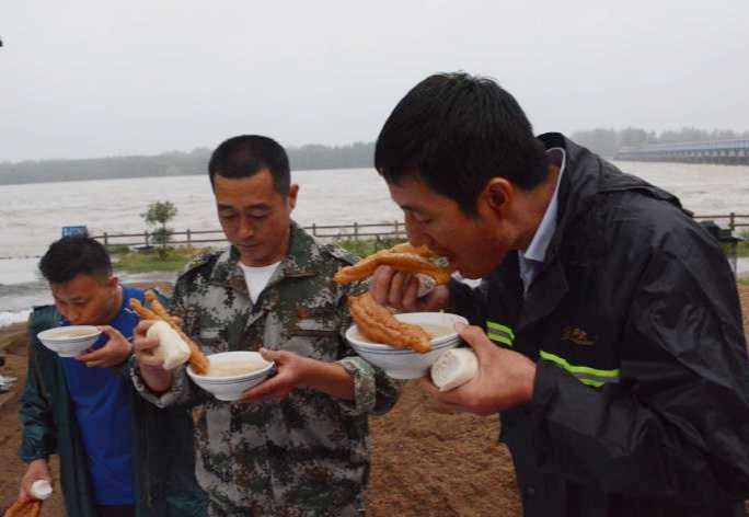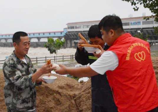 日前,山東省郯城縣馬頭鎮(zhèn)慈善愛心協(xié)會的志愿者,端來了熱氣騰騰的熱“糝”,讓連夜值守在沂河岸邊的應急隊員,除去“臺風”的寒氣。