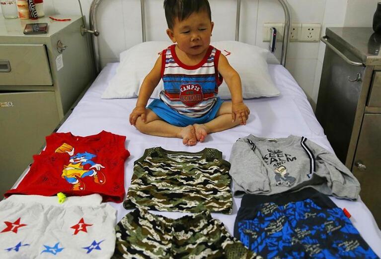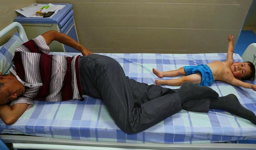 他不是一個小男孩。盡管他穿著童裝,看著也就兩三歲模樣和身高,實際上他已經(jīng)是 29 歲的青年男子。但是由于從小他的身體缺少一種激素,醫(yī)生說他再也不可能長高了。他和父親一起住在醫(yī)院,平時他都要借助一些道具才能爬上床,也常常被一些陌生人當(dāng)做小孩看待,這使他特別難過。由于天然的缺陷,他沒有去過學(xué)校,沒有交過什么朋友,也不敢喜歡女孩子。只和自己的父親相依為命?粗脑庥觯媸蔷拘陌。祝福這對父子,希望有奇跡發(fā)生。