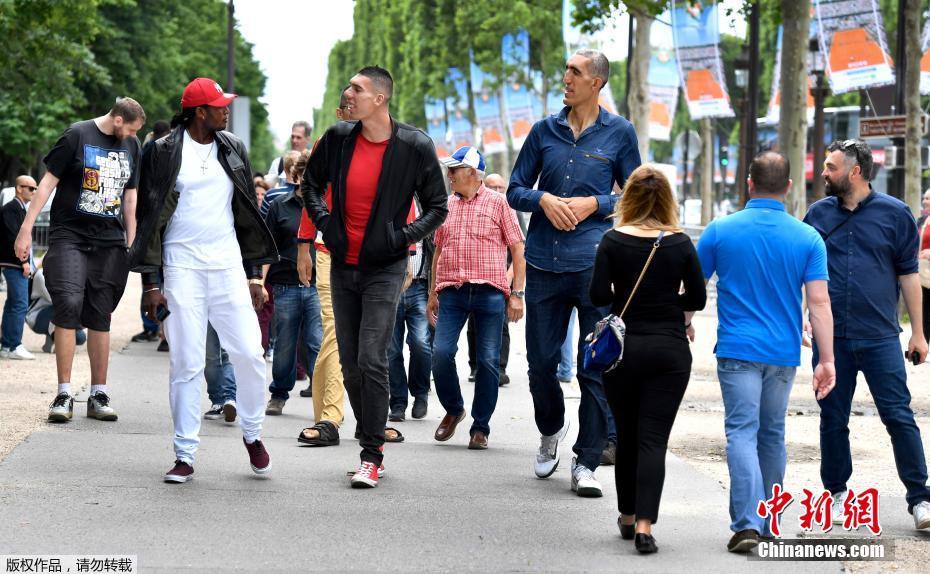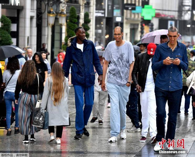 身高均超過2米的幾位男士走在巴黎街頭,周圍行人紛紛側(cè)目。