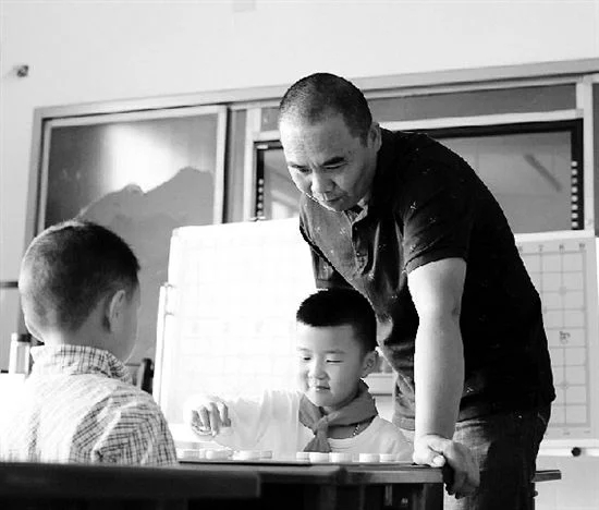 學(xué)校走廊里和花壇周邊擺滿了他們的成果——有一兩百盆蘭花和四五百盆多肉植物,這些花盆里立著一張張標(biāo)明植物名稱的標(biāo)簽。“這些標(biāo)簽都是學(xué)生幫忙寫上的,現(xiàn)在,這里大部分植物學(xué)生都能認(rèn)出名字來。”徐陸軍說。依靠獨(dú)臂攝影指導(dǎo)學(xué)生下棋徐陸軍老師在上數(shù)學(xué)課。