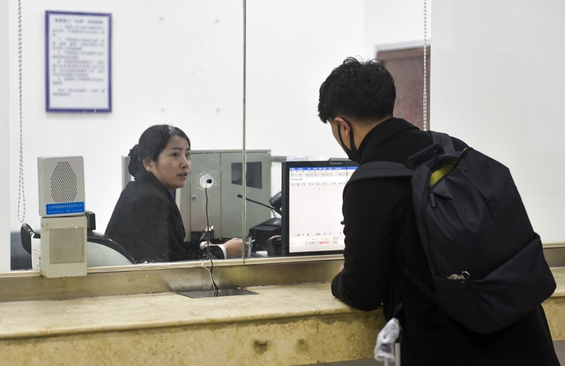 與丈夫的風吹雨淋不同,趙曉麗的工作就是守在窗口,為乘客提供最快捷的改簽、退票服務(wù)。