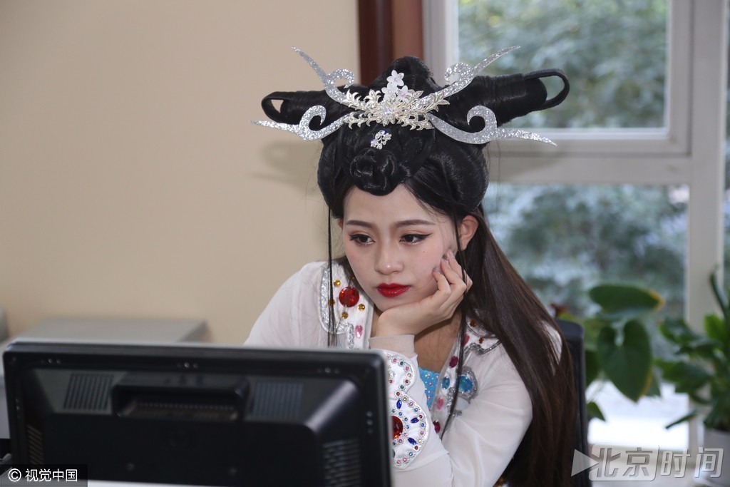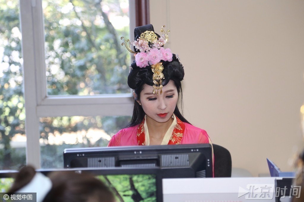 杭州一景區(qū)員工集體穿古裝上班 穿越范兒十足