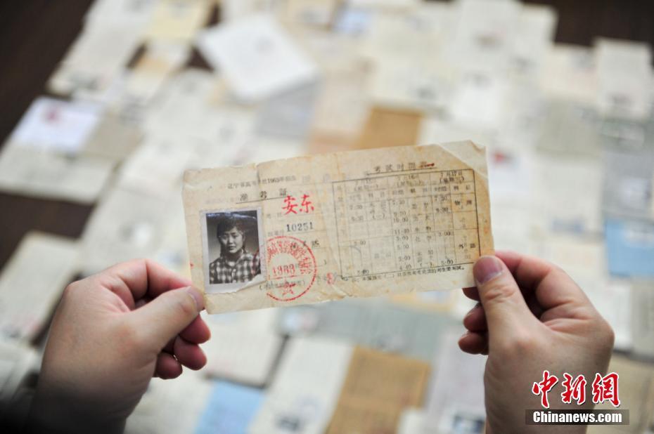 6月9日,遼寧沈陽,詹洪閣展示收藏的高考準(zhǔn)考證。沈陽民間收藏家詹洪閣,30年時間已收藏兩百余張高考準(zhǔn)考證,希望有機會可以物歸原主。