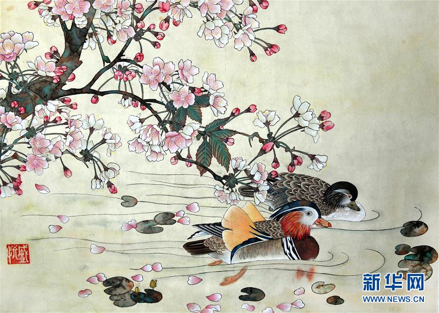 盛悅創(chuàng)作的工筆畫(huà)(7月25日攝)。新華社記者 陶明 攝