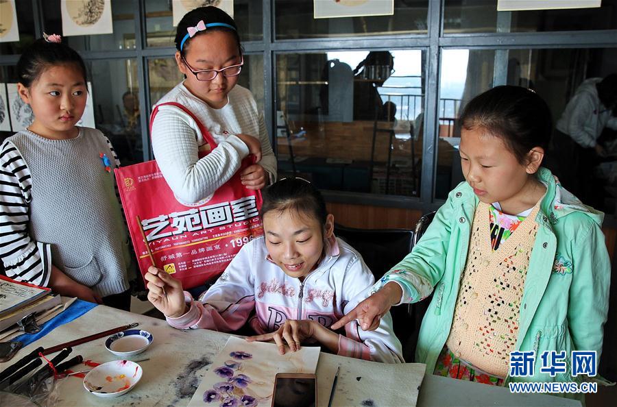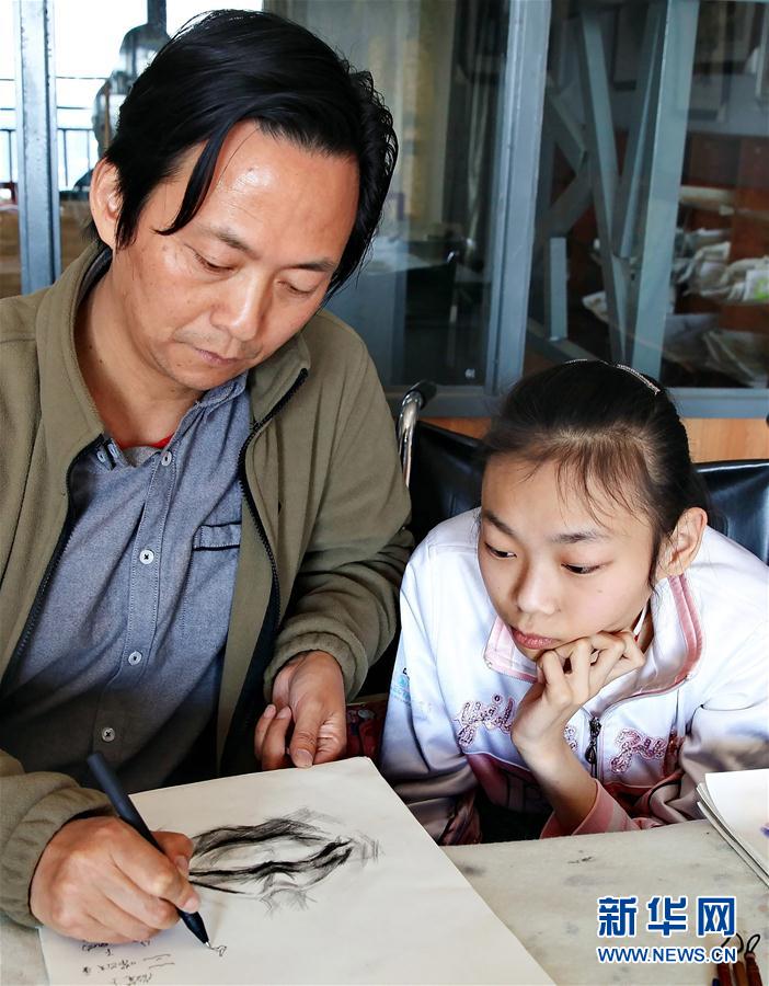 畫(huà)室鄭泉老師在輔導(dǎo)盛悅作畫(huà)(4月23日攝)。新華社發(fā)(董志奇 攝)