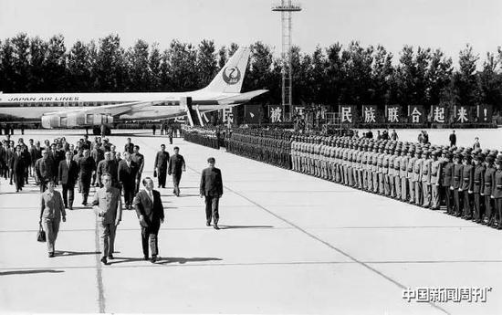 1972年9月25日上午,田中首相的專機抵達北京機場。