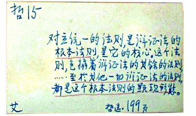 從卡片內(nèi)容來看,張學良對馬列主義的理論和思想頗有獨到深入的見解與感悟。例如讀到《辯證唯物論》第3頁時,他在卡片上寫道: