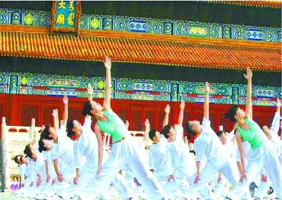 2010年,首都職工在勞動人民文化宮太廟前廣場表演“新型”工間操