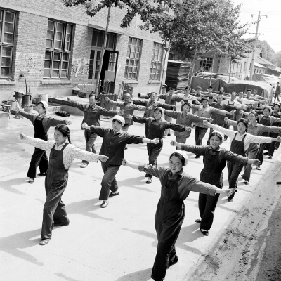 1975年,北郊木材廠的職工在做廣播體操