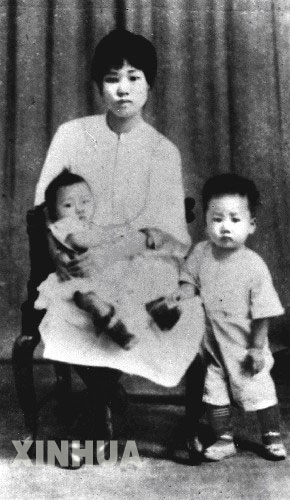 楊開(kāi)慧與幼兒時(shí)的毛岸英、毛岸青合影