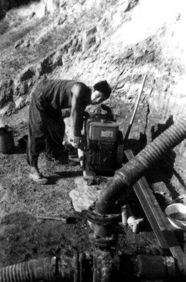 這是習近平在梁家河參加勞動的照片,他正在操作柴油機抽水。(延川縣委宣傳部供圖)