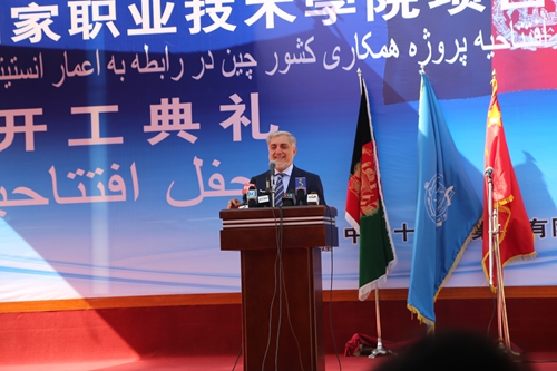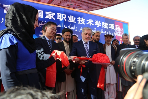 阿富汗首席執(zhí)行官阿卜杜拉、我國駐阿富汗大使姚敬一起出席阿國家職業(yè)技術(shù)學(xué)院項目開工儀式并剪彩